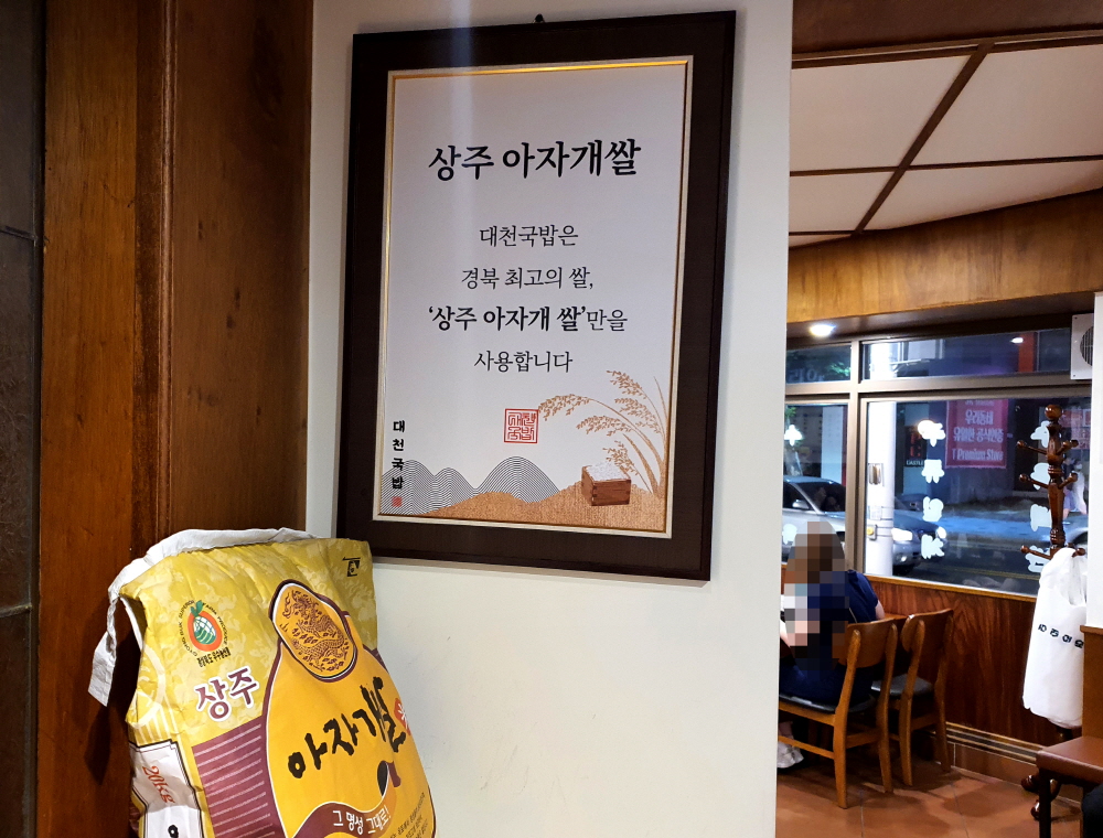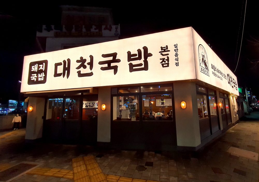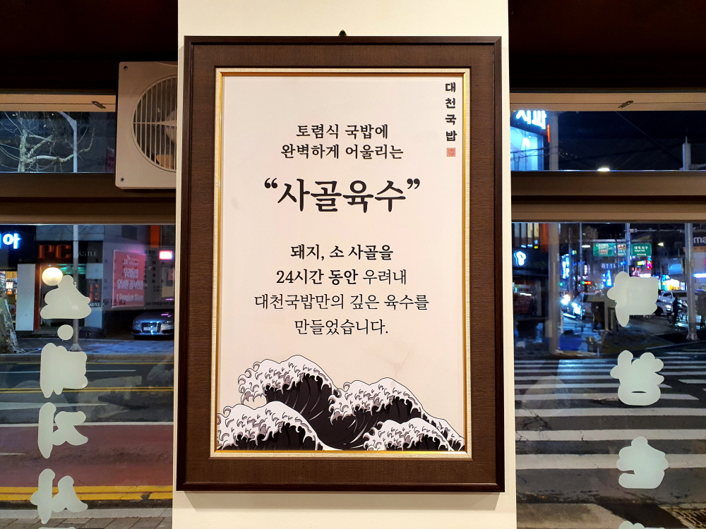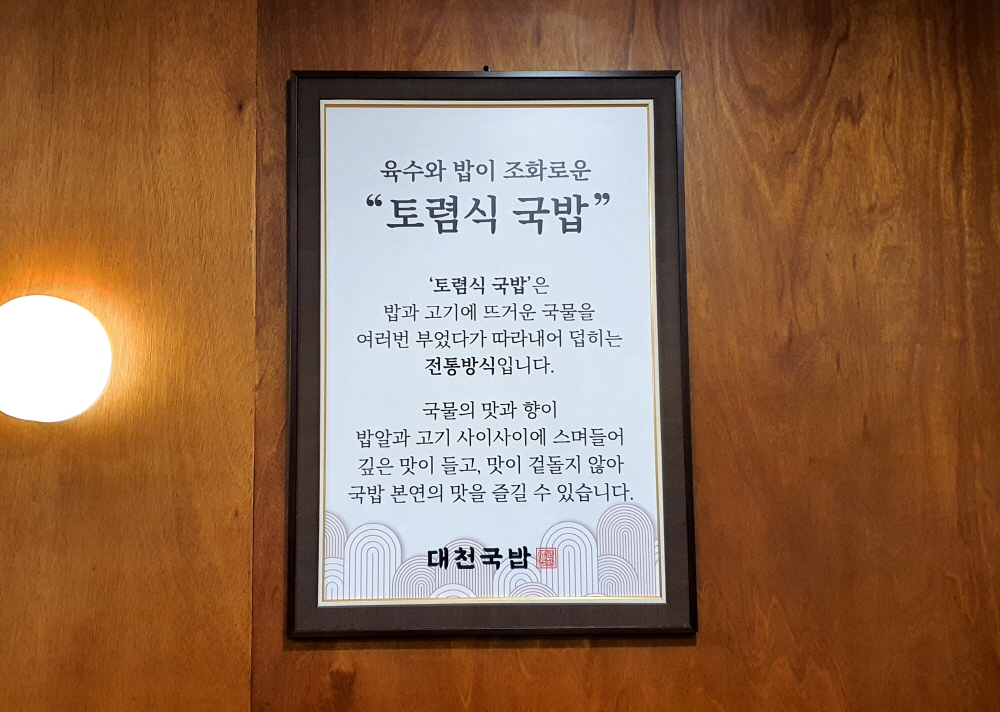 입구 옆 벽면에 대천국밥 슬로건으로 보이는
