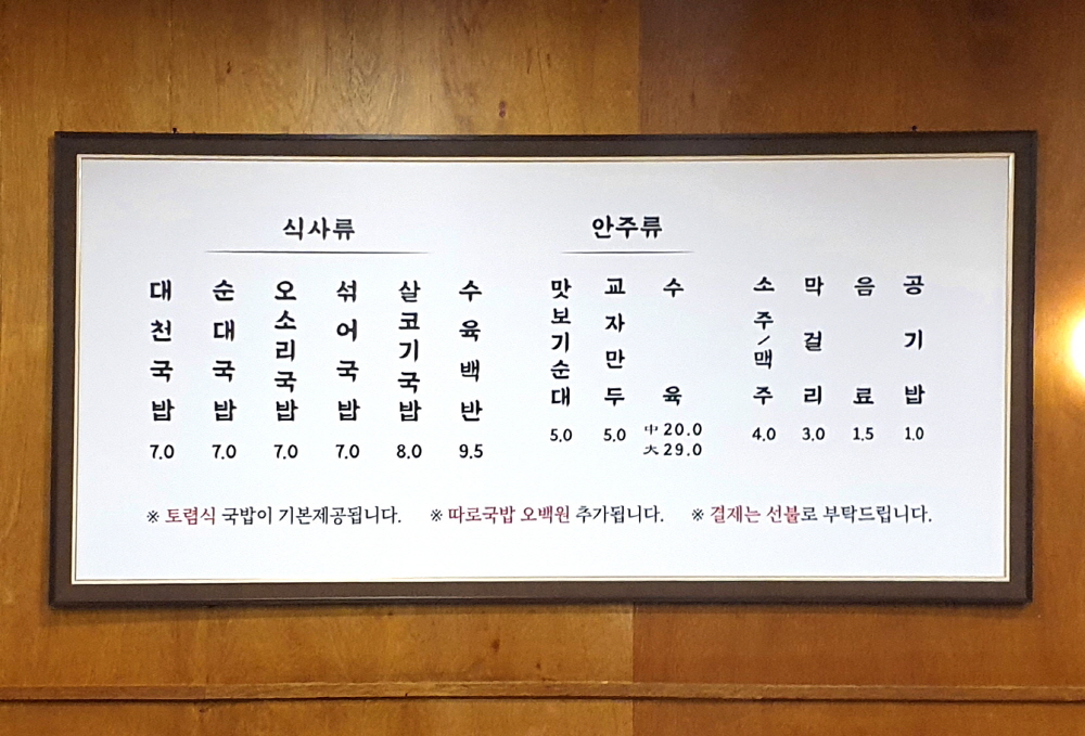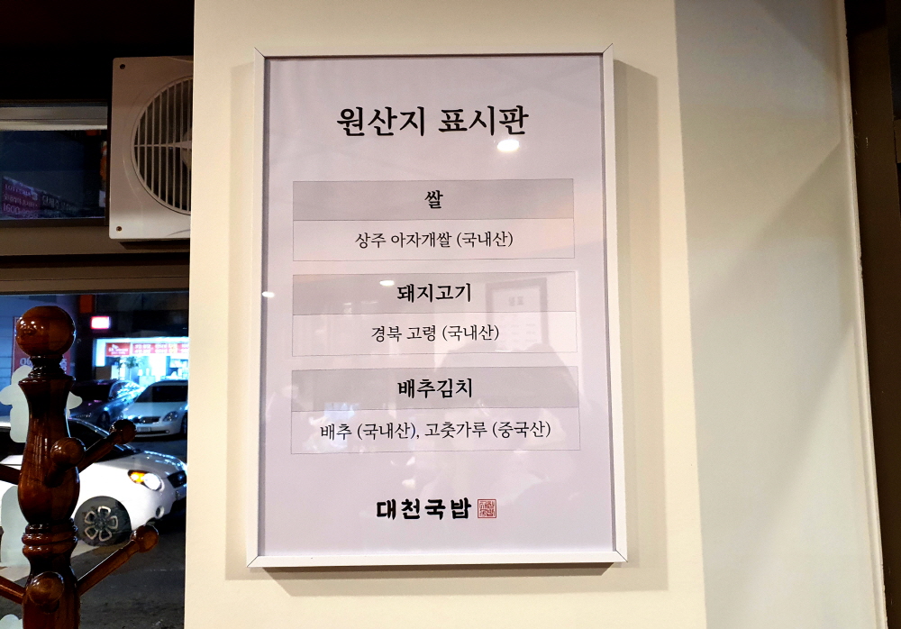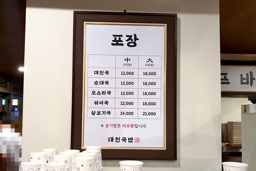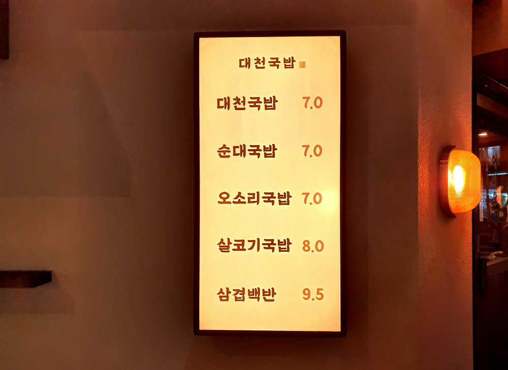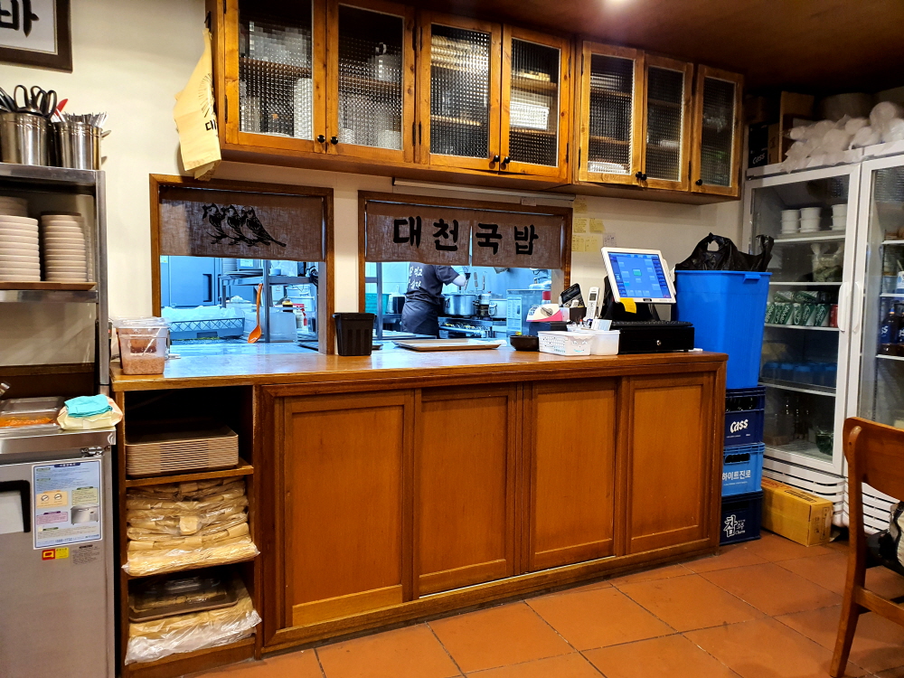 입구 옆 벽면에 대천국밥 슬로건으로 보이는